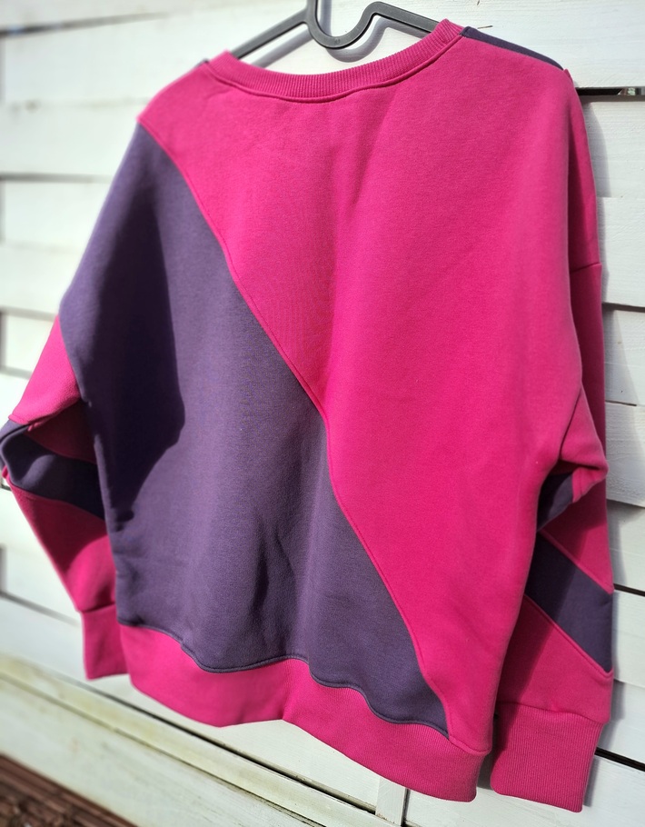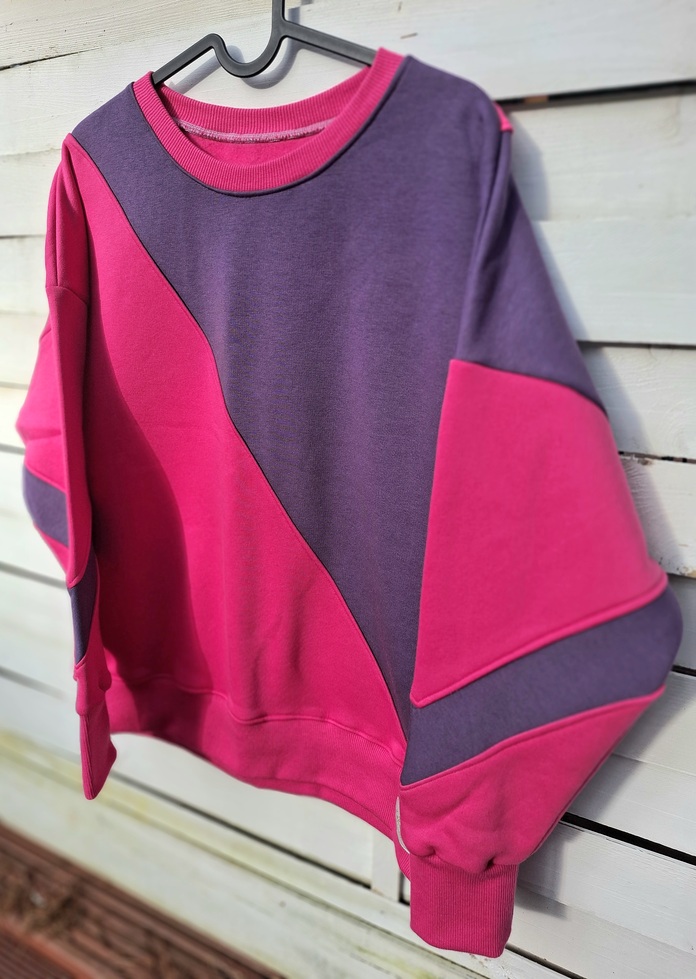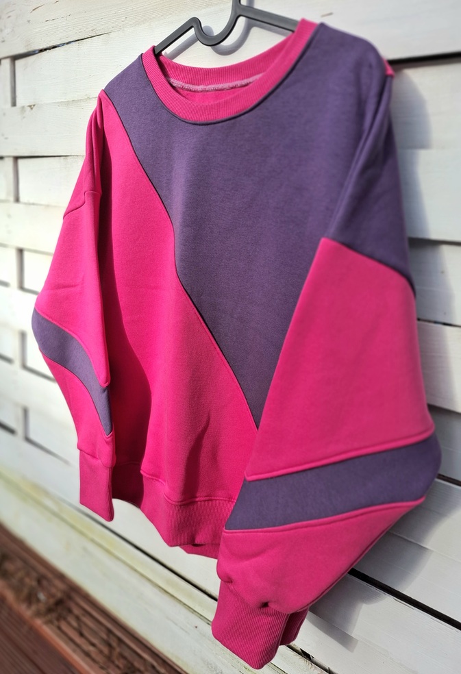 Przepiękna i zjawiskowa damska bluza z kolekcji AURIS. Fason owersize, krótka. Całość uszyta jest z dzianiny dresowej drapanej premium (na misiu pod spodem) o gramaturze ok 300g . Połączenie kolorystyczne to róż w połączeniu z fioletem. Wygląda na prawdę zjawiskowo.