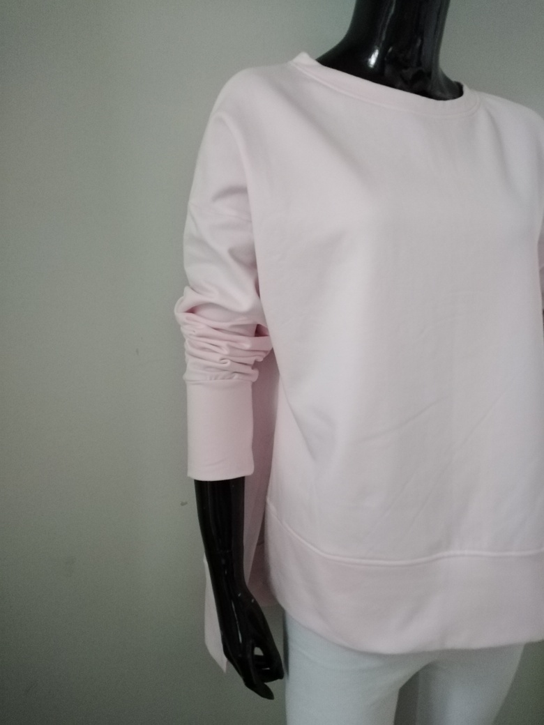 Bluza damska o prostym fasonie z rozcięciami po bokach. Kolor blady róż