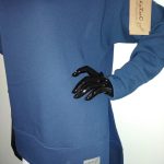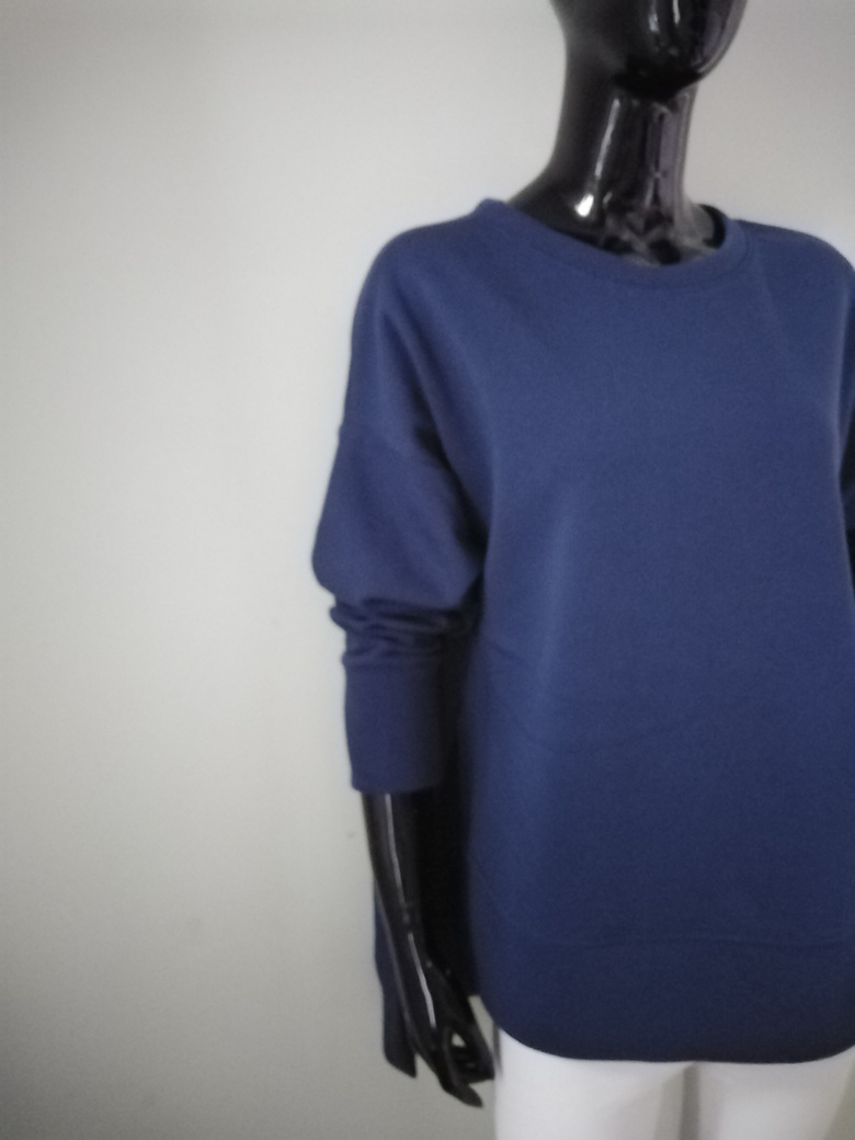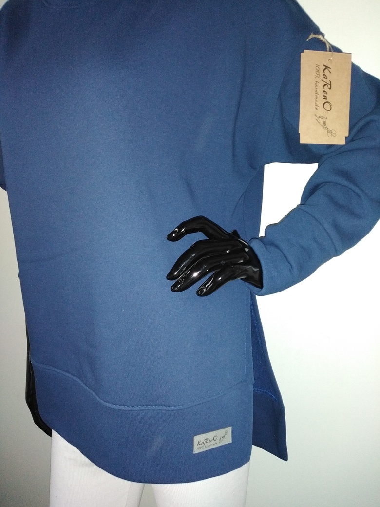 Bluza damska o prostym fasonie. Przód krótszy a tył dłuższy. Wysokie rozcięcia wysokie po bokach.  Uszyta z dzianiny dresowej grubej, drapanej na misiu od spodu. Fason bardzo wygodny luźny, który doskonale ukryje wszelkie niedoskonałości sylwetki. Idealna do spodni.