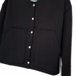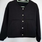 Damska bluza typu bomerka. Fason krótki, rękawy szerokie i zwężane przy nadgarstku. Całość zapinana na napy. Dekolt półokrągły. Idealny model do eleganckich spodni, spódnicy jak również do dżinsów czy dresów. Idealnie sprawdzi się jako uzupełnienie codziennej stylizacji, jak i tych bardziej wizytowych.