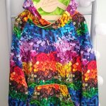 Bluza z kapturem z obszernym kapturem z dużą kieszenią na przodzie w piękny wzór kolorowych klocków