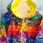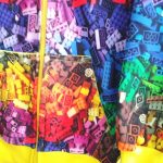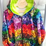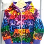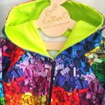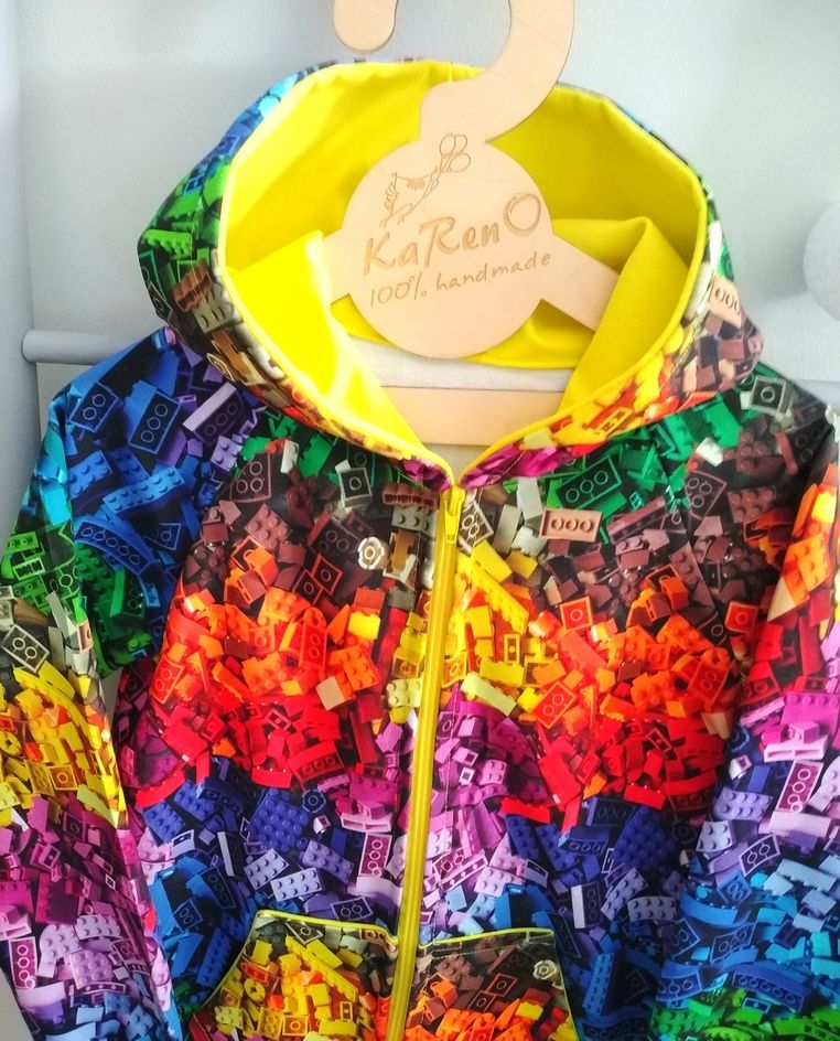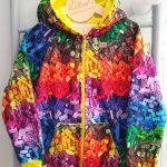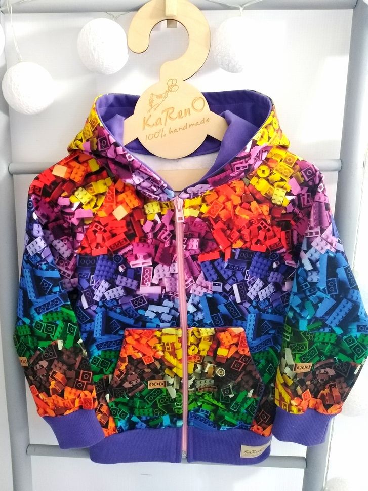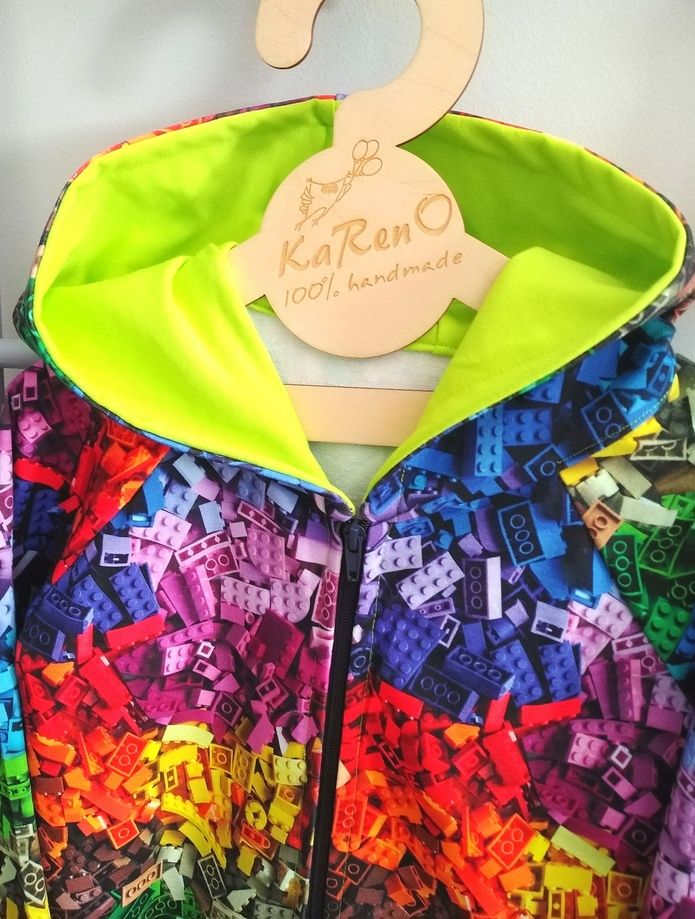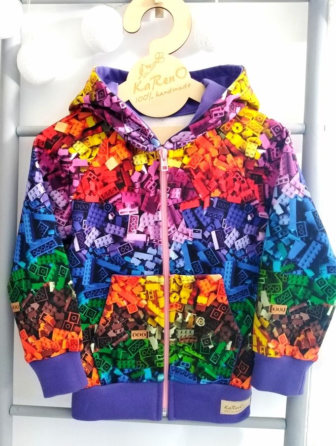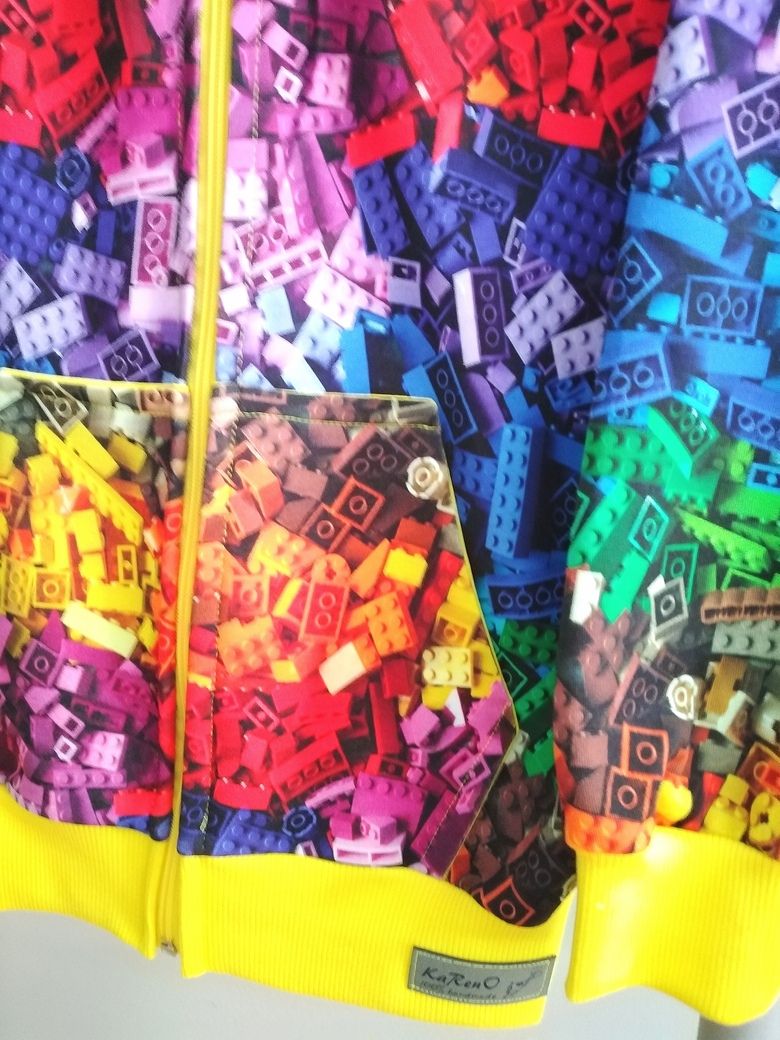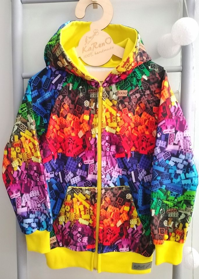Bluza zapinana na zamek z obszernym kapturem i kieszeniami na przodzie w piękny wzór kolorowych klocków