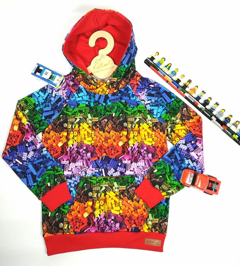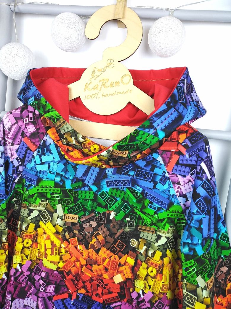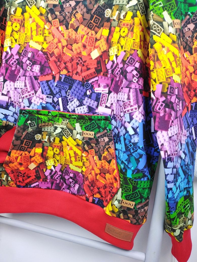 Bluza z kapturem z obszernym kapturem z dużą kieszenią na przodzie. Uszyta jest z dzianiny dresowej pętelkowej premium w piękny kolorowych klocków , bardzo miękka i miła w dotyku. Nadruk wykonany jest metodą komputerową.Dzięki domieszce elastanu do tkaniny nasze bluzy są bardzo wygodne i nie krępują ruchów.