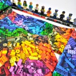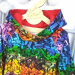 Bluza z kapturem z obszernym kapturem z dużą kieszenią na przodzie w piękny wzór kolorowych klocków