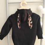 Bardzo gruba i mięsista bluza dla dziewczynki. Fason długi o wydłużonym fasonie z tyłu. Bluza z kapturem i długimi uszami. Uszyta jest z dzianiny dresowej drapanej premium o gramaturze aż 300g, w kolorze brudnej czarnym, zaś wykończenia bluzy w piękny print kolorowych grzybków na czarnym tle. Bardzo miękka i miła w dotyku.
