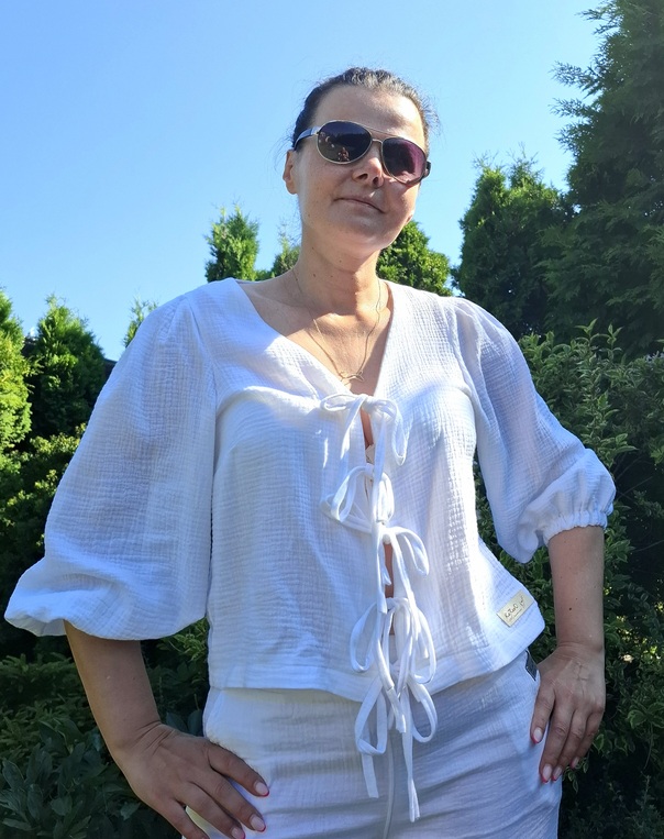 Przepiękna bluzka muślinowa wiązana na przodzie z półokrągłym dekoltem to prawdziwy must have w szafie każdej kobiety!