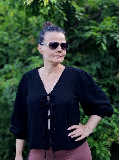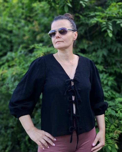 Bluzka damska muślinowa wiązana czarna