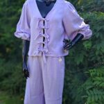 Uszyta została z tkaniny bawełnianej muślinowej premium (double gaze), która dzięki swojej ciekawej strukturze na pewno przypadnie Ci do gustu.