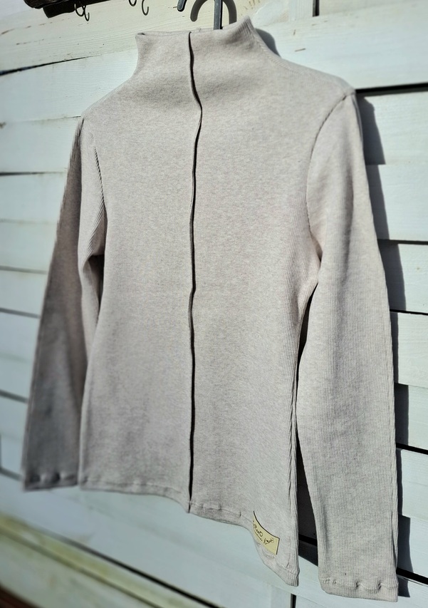 Piaskowa damska bluzka damska z półgolfikiem to prawdziwy must have w szafie każdej kobiety!