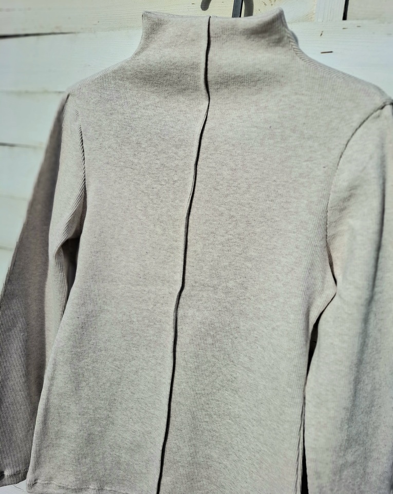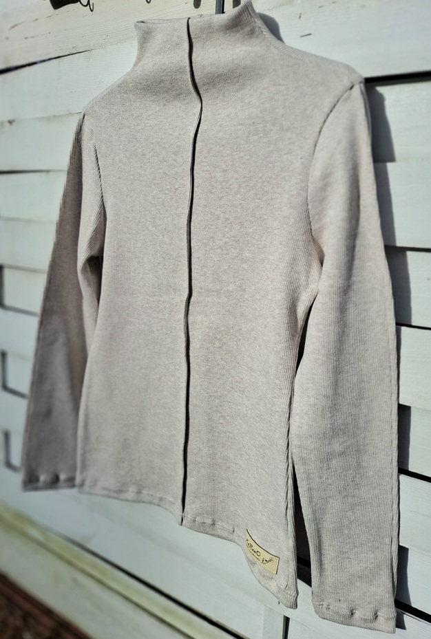 Bluzka damska prążek piaskowa ze stójką