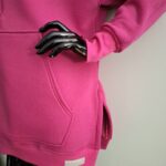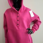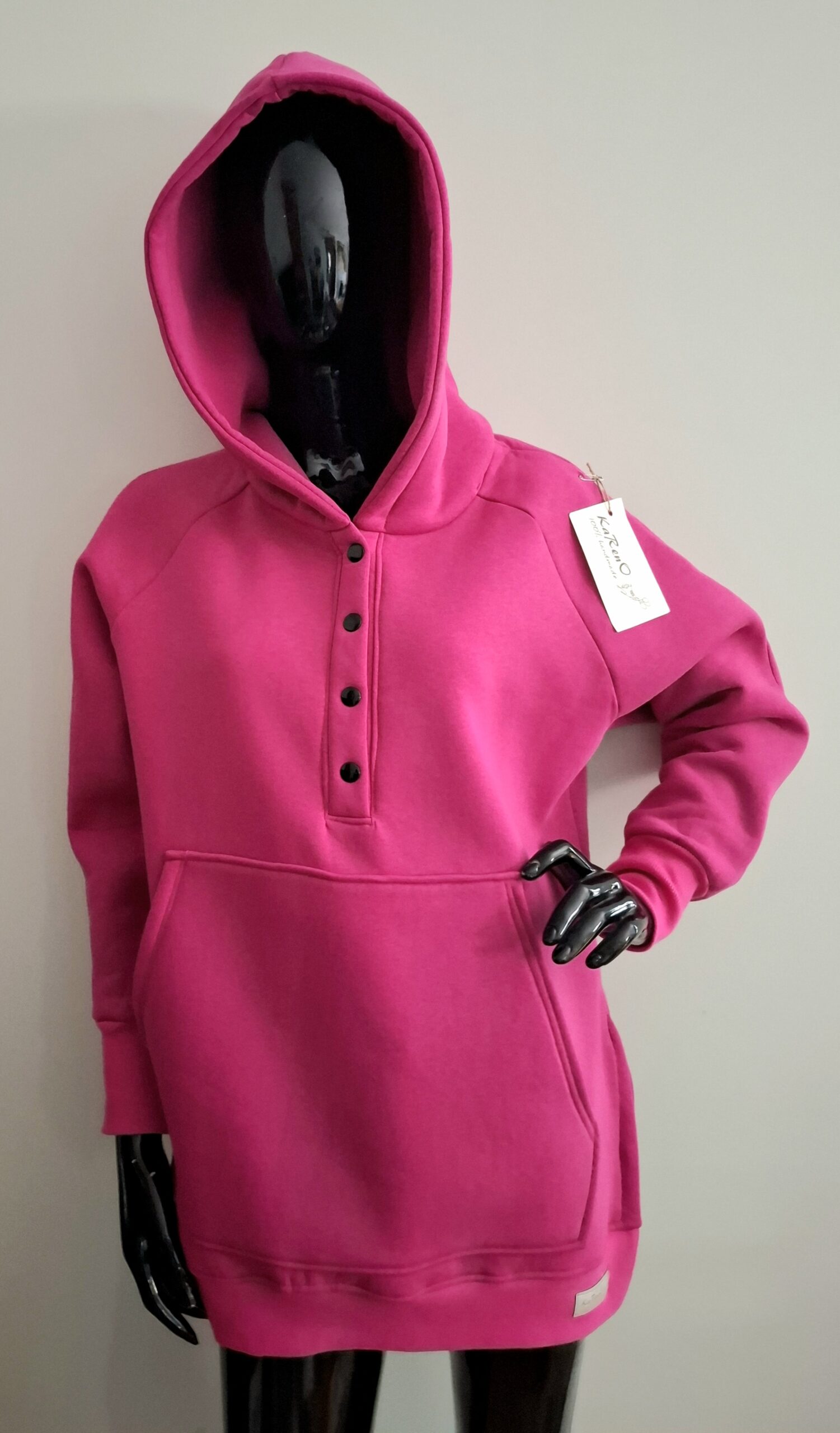 Piękna mięsista bluza damska w kolorze łososiowym. Dzianina dresowa drapana premium z misiem pod spodem. Bardzo ciepła. Fason z kapturem, zapinana na metalowe napy, rozcięcia u dołu bluzy zapewniają wygodę i komfort noszenia, nie krępuje ruchów. Uroku całości dodaje obszerny kaptur.