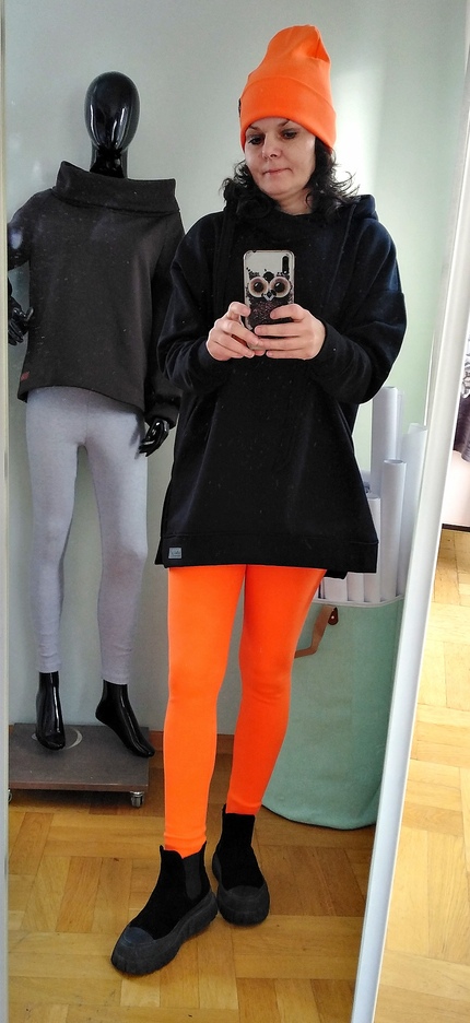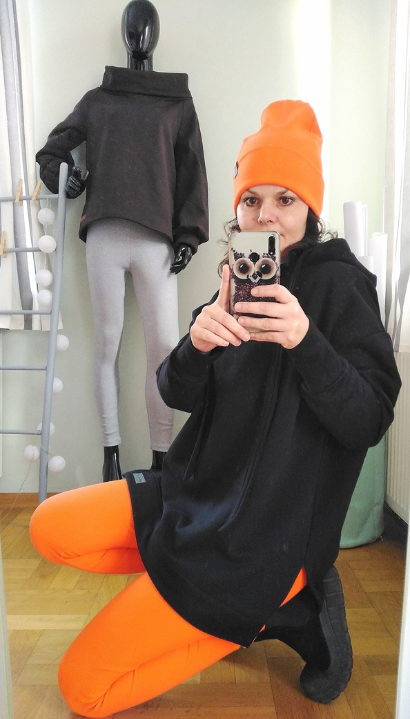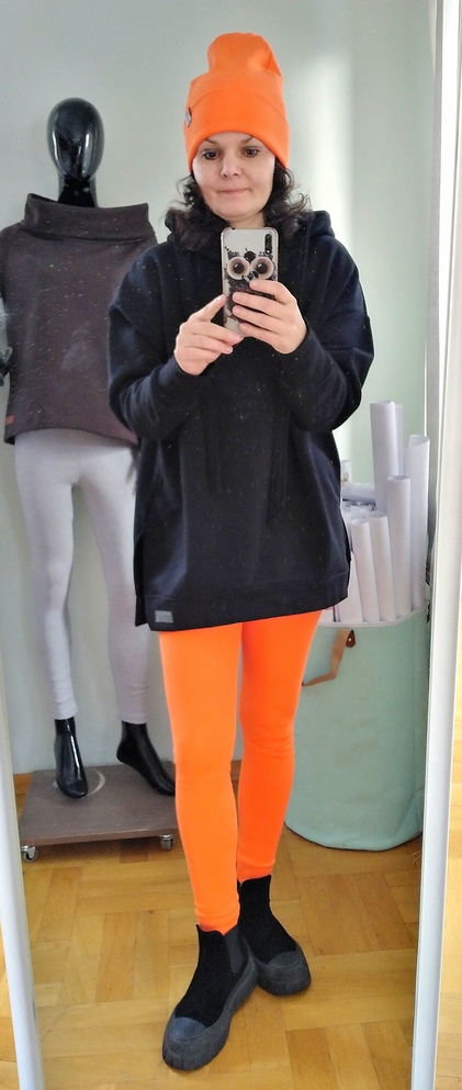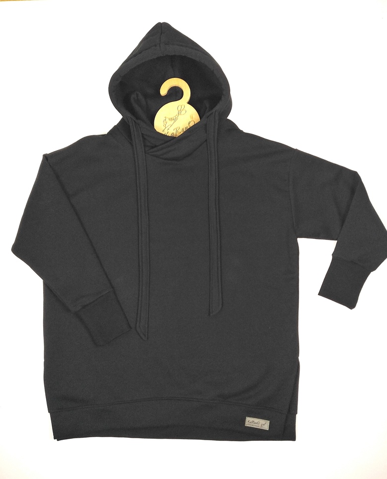 Piękna mięsista bluza damska w kolorze czarnym. Dzianina dresowa drapana premium z misiem pod spodem. Bardzo ciepła. Fason owersize z obniżoną linią ramion, rozcięcia u dołu bluzy zapewniają wygodę i komfort noszenia, nie krępuje ruchów. Uroku całości dodaje obszerny kaptur.