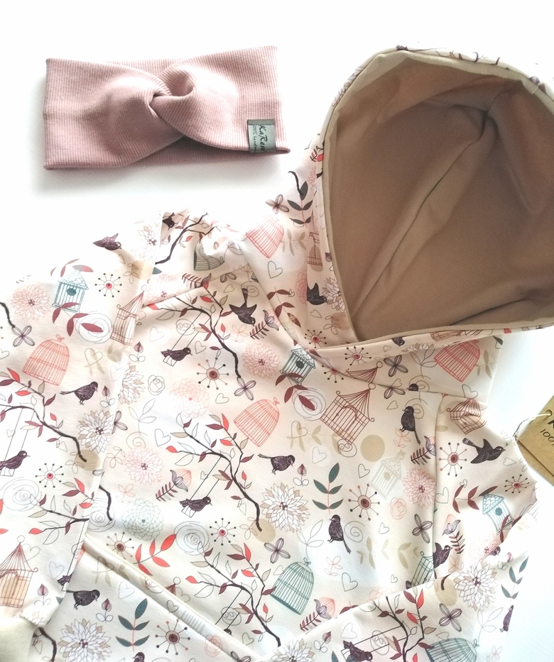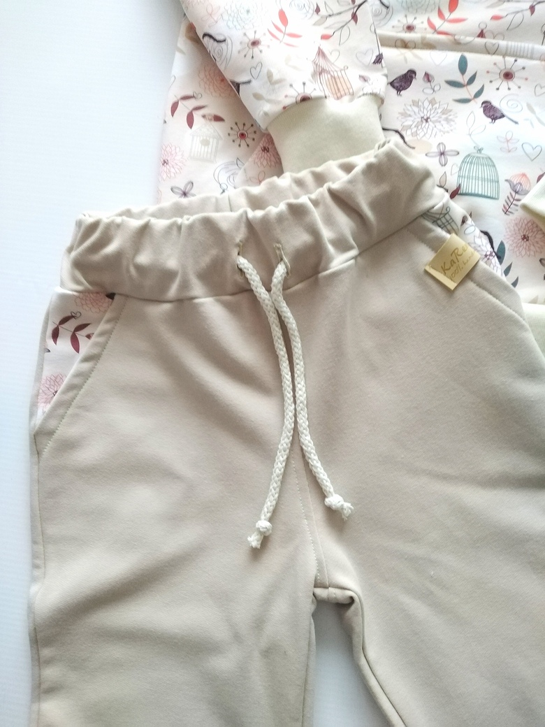Dwuczęściowy dres dziecięcy w piękny wzór ptaszków i klatek….