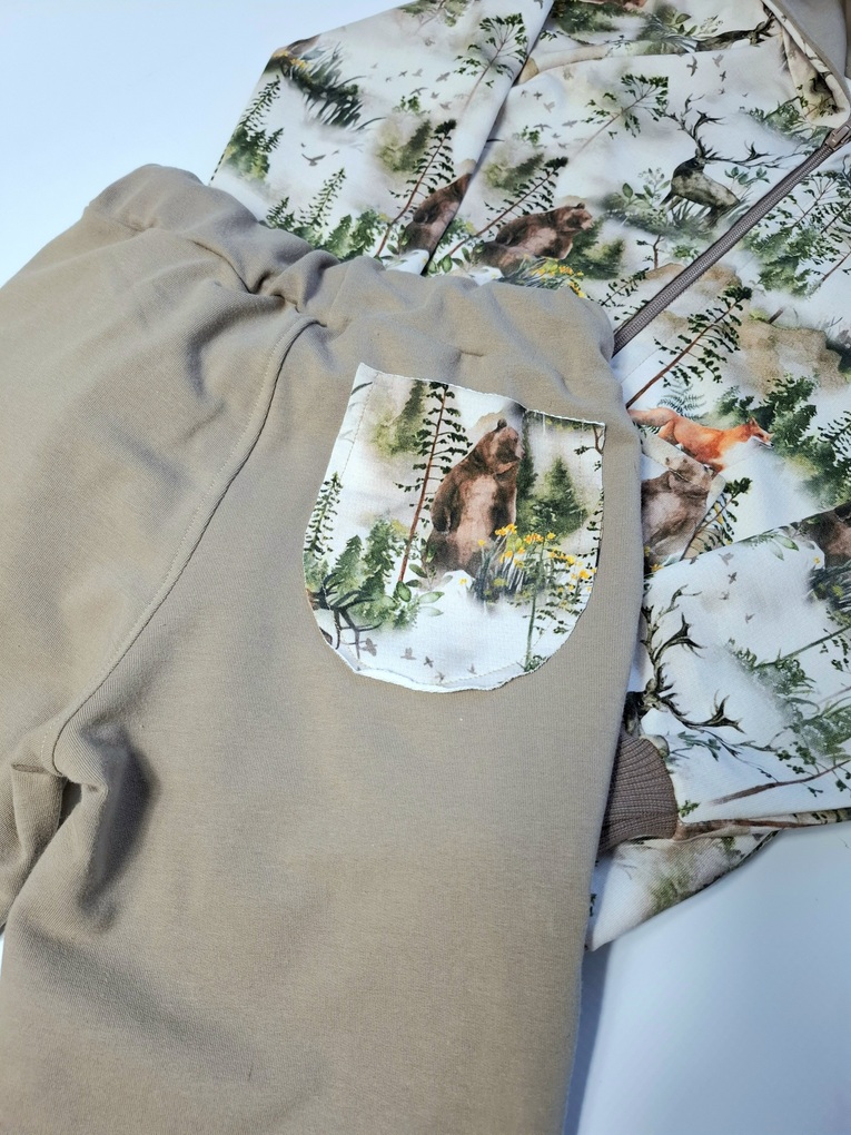Dres dziecięcy zwierzęta w lesie beż