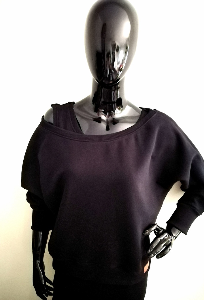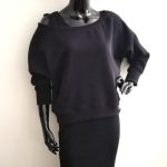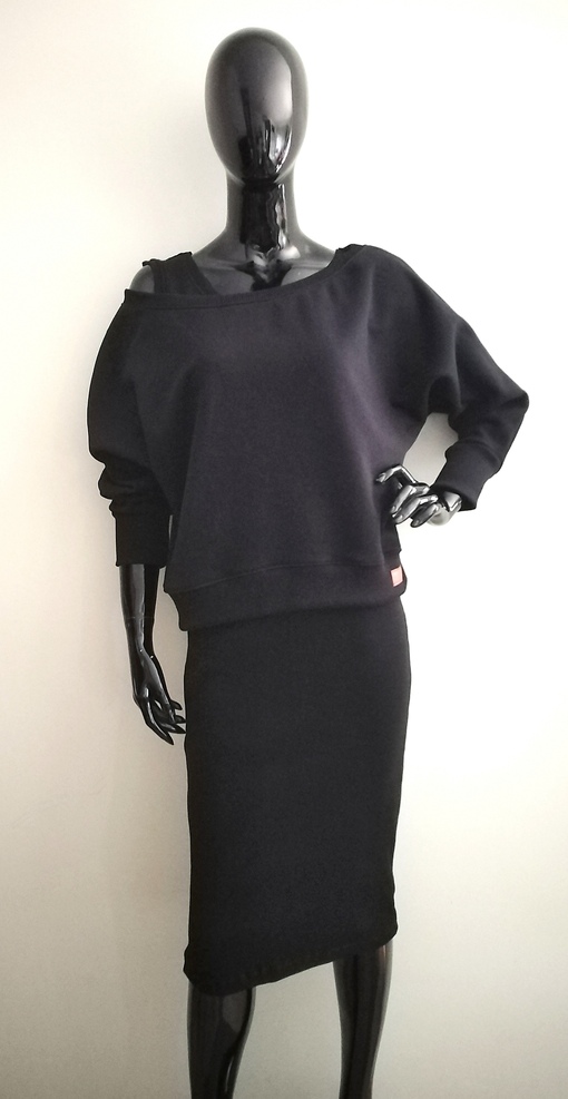 Damski komplet premium w kolorze czarnym. Sukienka plus krótka bluza owersize