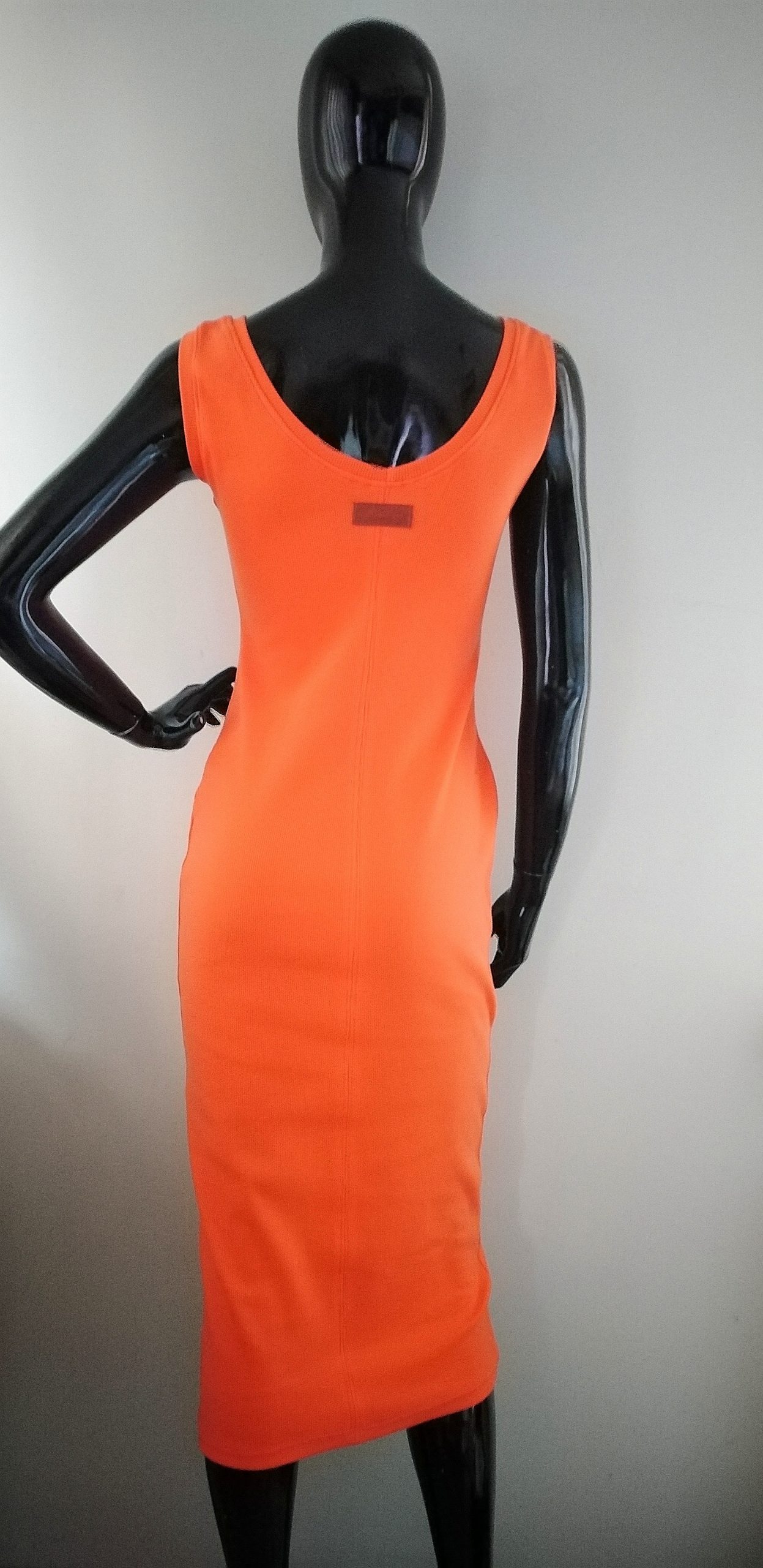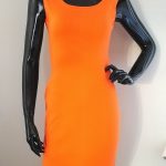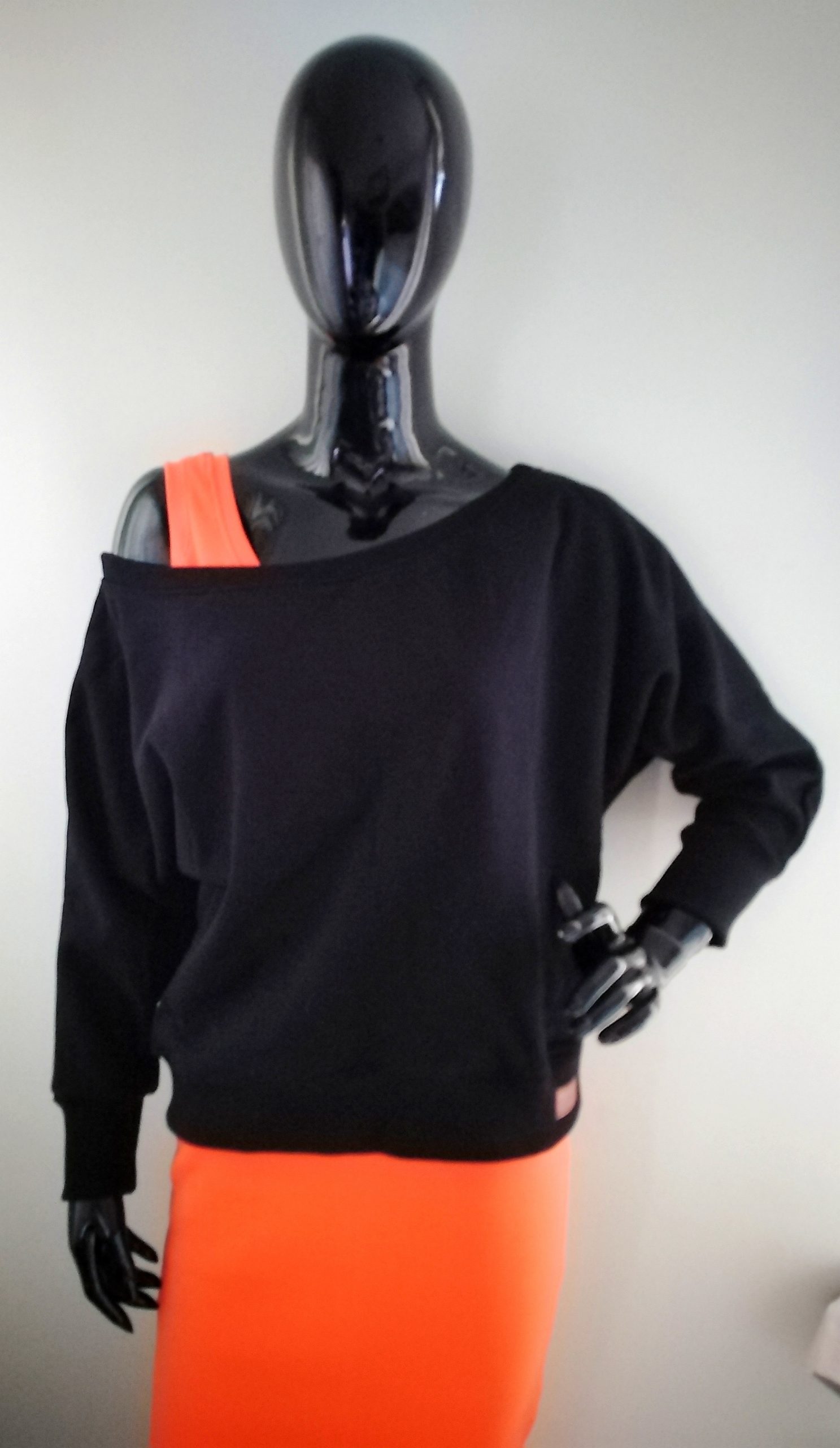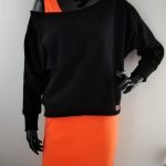 Damski komplet premium. Sukienka w kolorze soczystej pomarańczy plus krótka bluza owersize czarna
