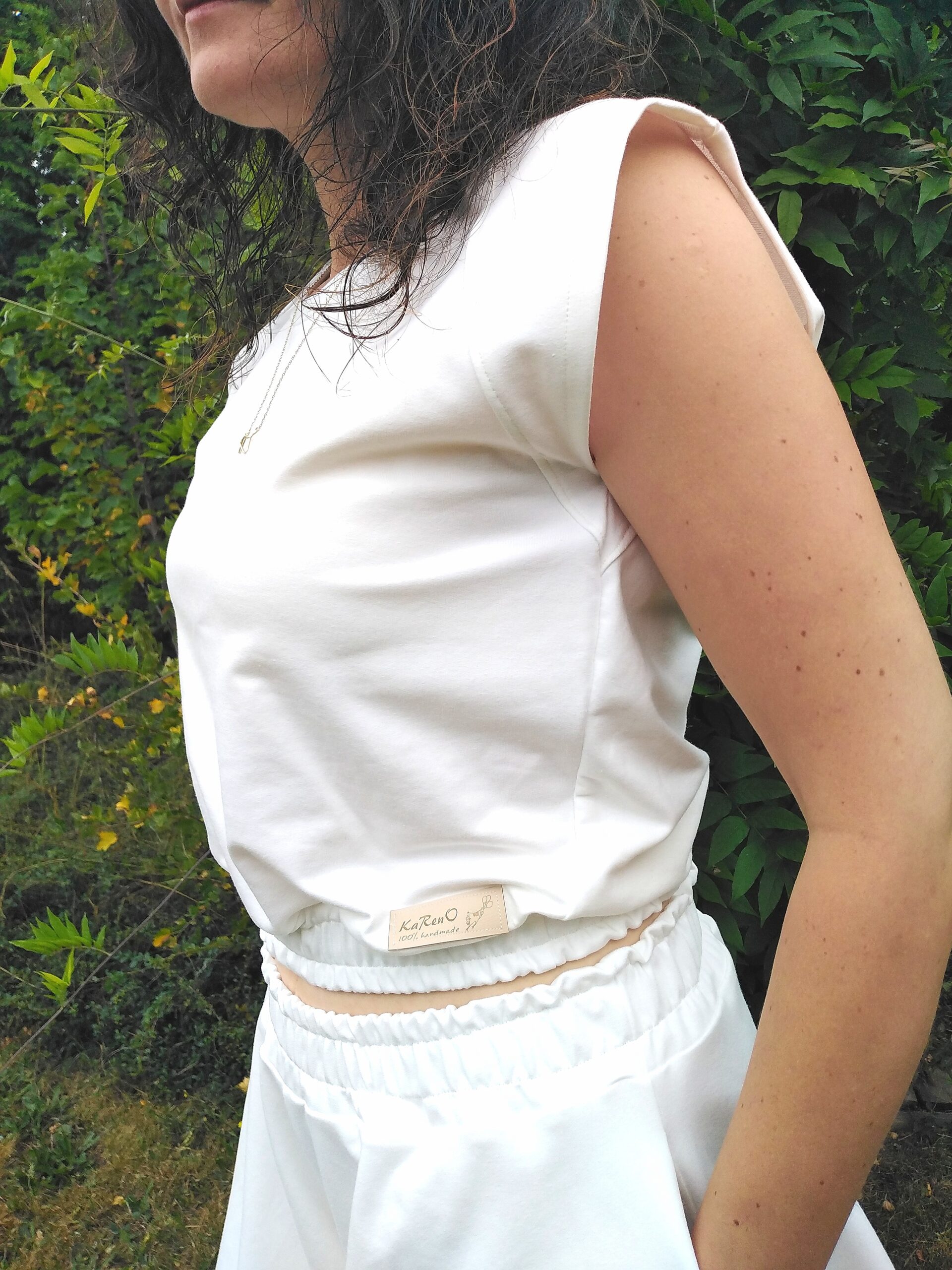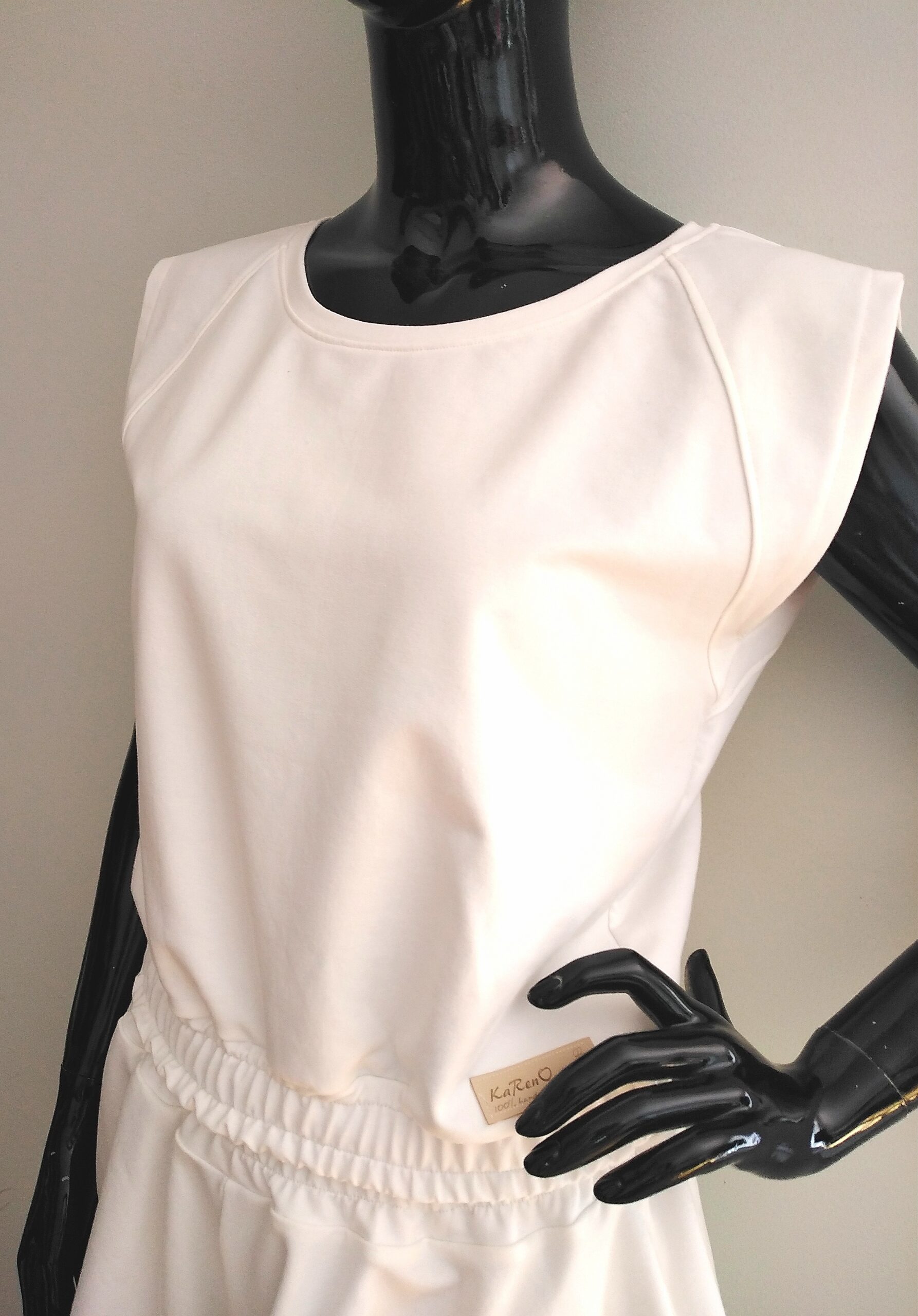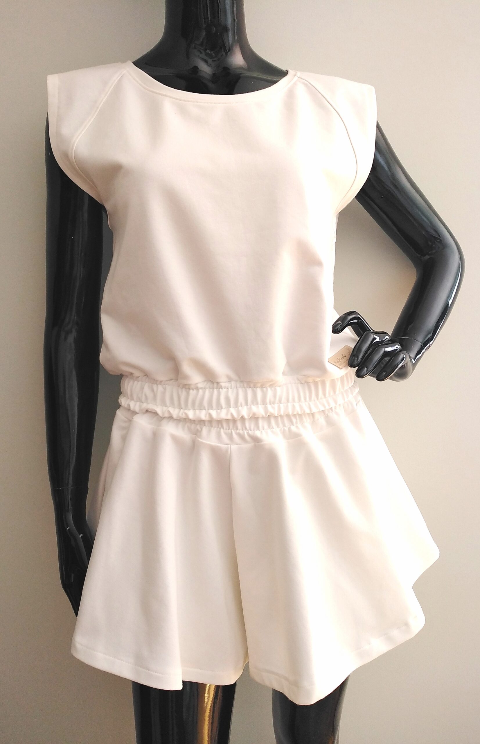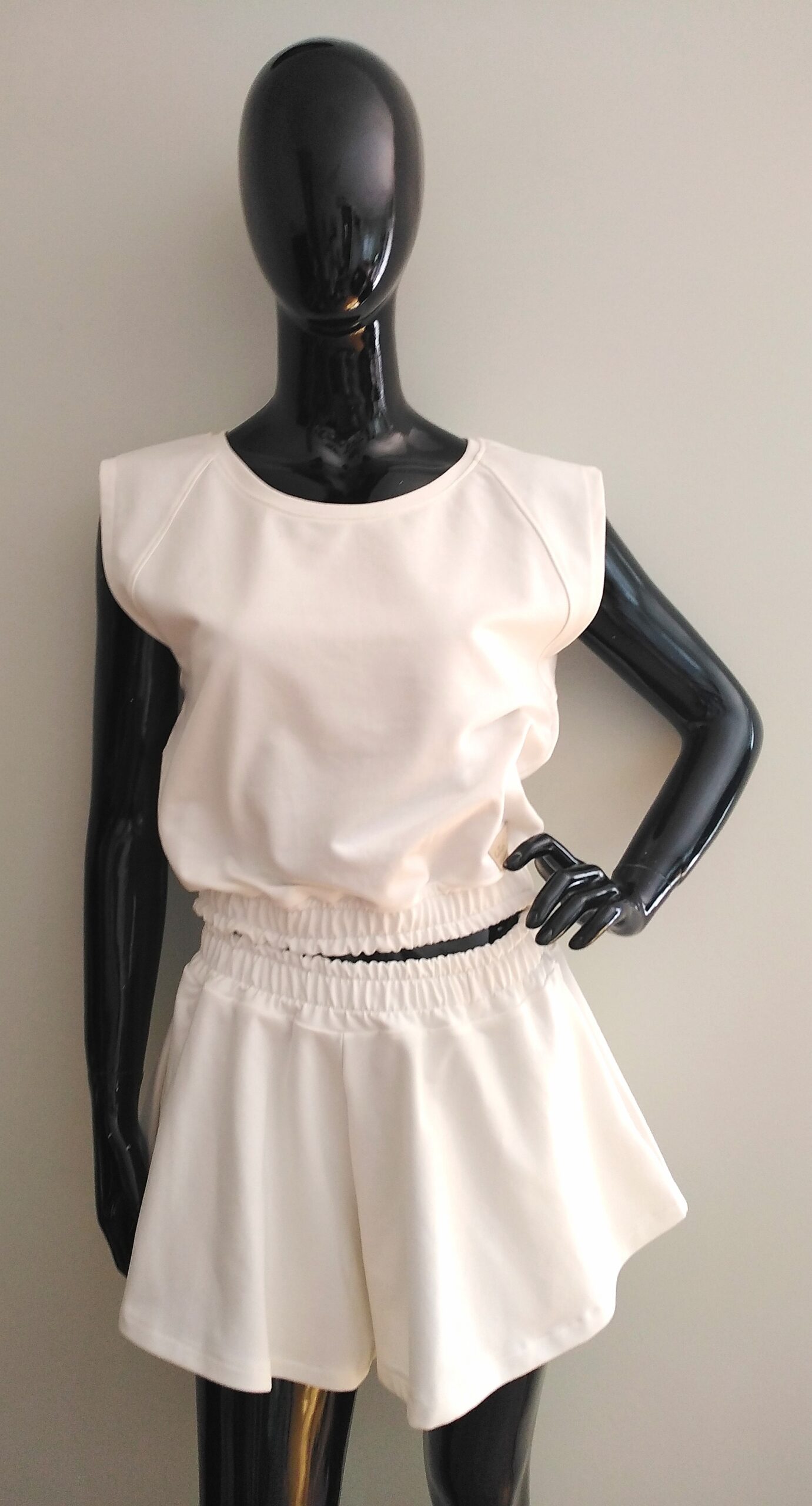 Komplet VIVA uszyty jest z dzianiny dresowej cienkiej pętelkowej premim w kolorze śmietankowym.