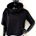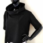Piękny komplet  damski składający się z krótkiej bluzy o fasonie owersize z kapturem uszytej z dzianiny dresowej pętelkowej premium, zaś spódnica ma fason ołówkowy i jest wykonana z dzianiny ściągaczowej prążkowanej premium.
