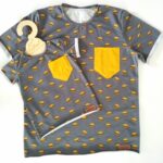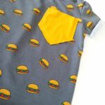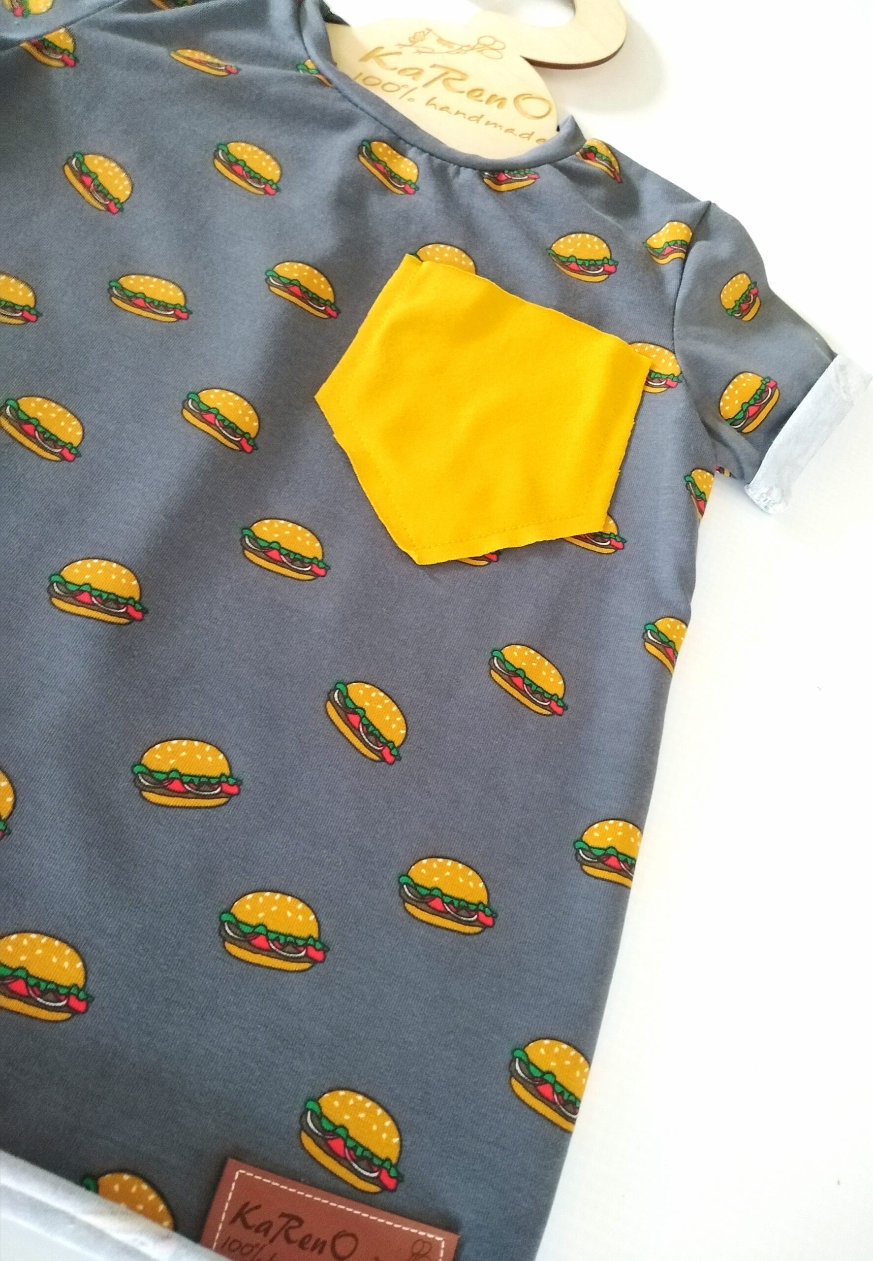 Koszulka z krótkim rękawem w piękny wzór hamburgerów z  kieszonką musztardową w wersji dla chłopca.