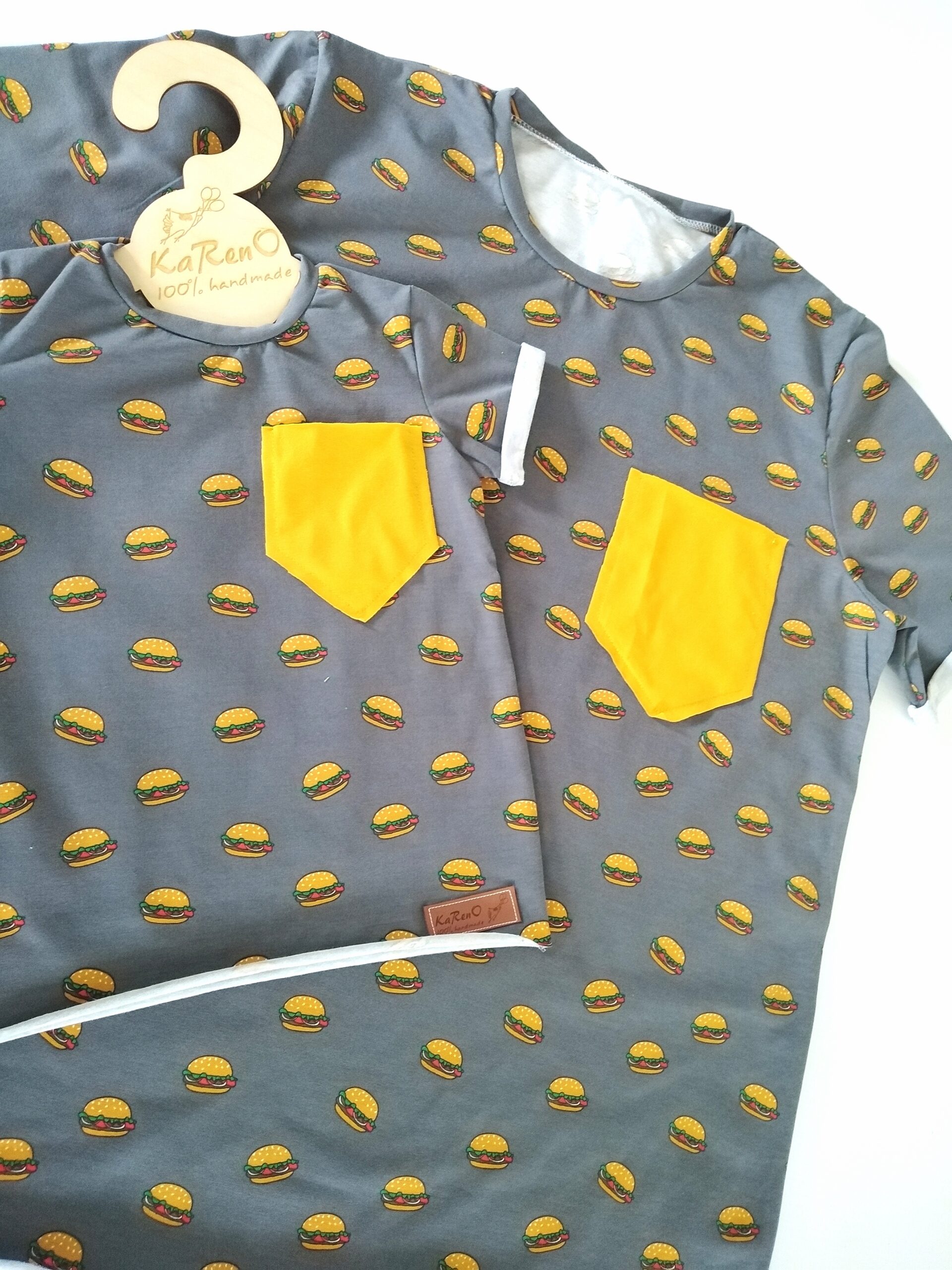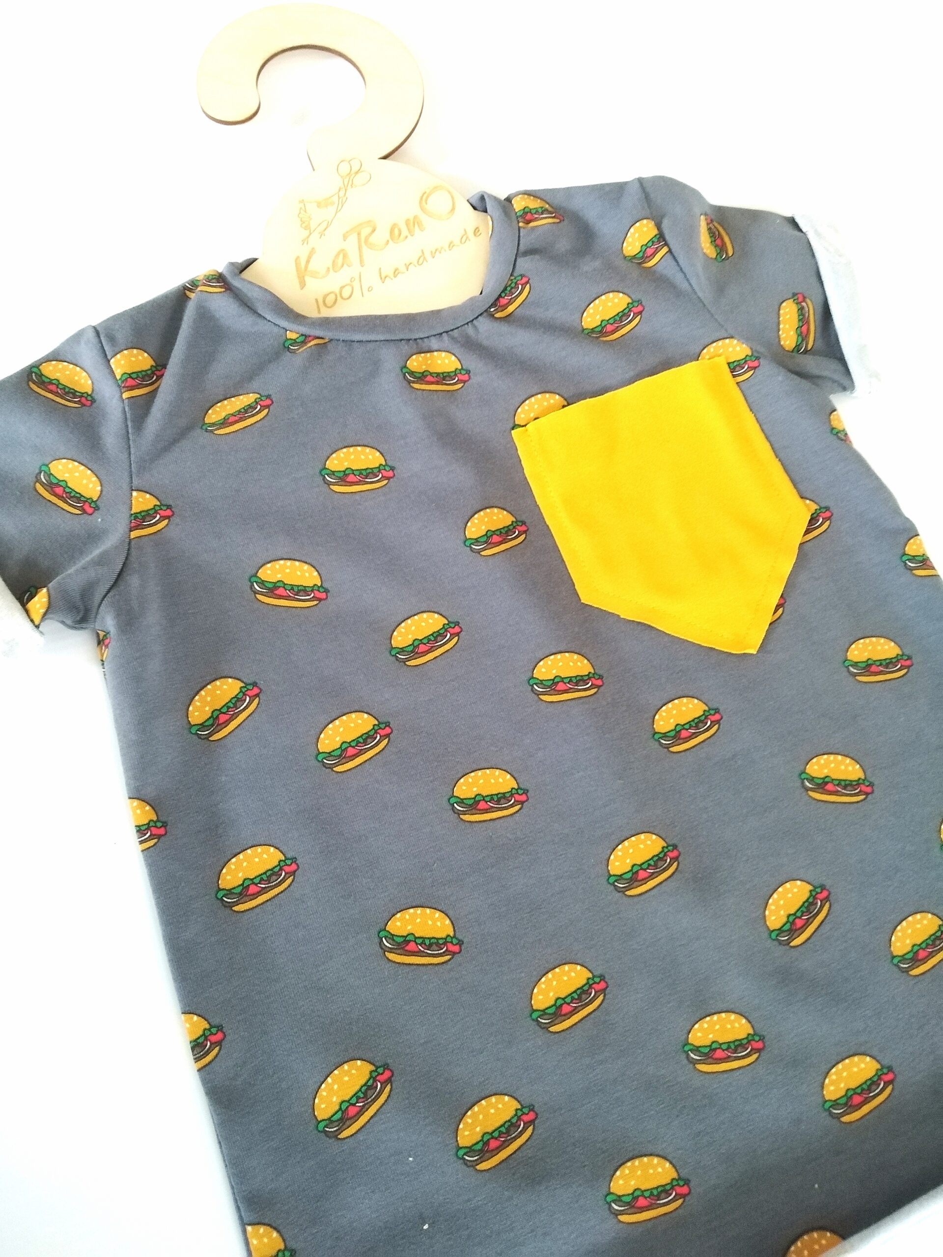 Koszulka z krótkim rękawem w chłopięca w hamburgery z musztardową kieszonką