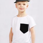 Koszulka z krótkim rękawem w kolorze białym z czarną kieszonką w wersji dla chłopca.