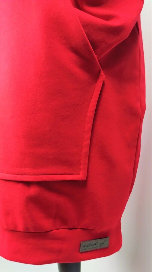 Przepiękna sukienka uszyta z wysokogatunkowej dzianiny premium w kolorze czerwonym w połączeniu z dzianiną i sznurkiem bawełnianym w kolorze czarnym, dodatkowo dzięki domieszce elastanu 6-8% jest wygodna, elastyczna, idealna na co dzień, jak i na wyjątkowe okazje.