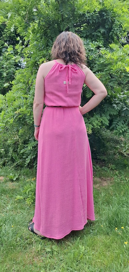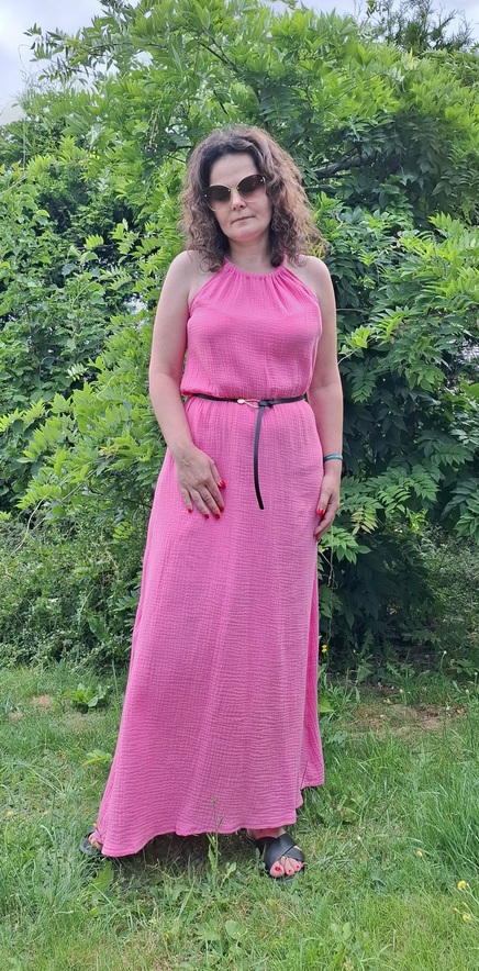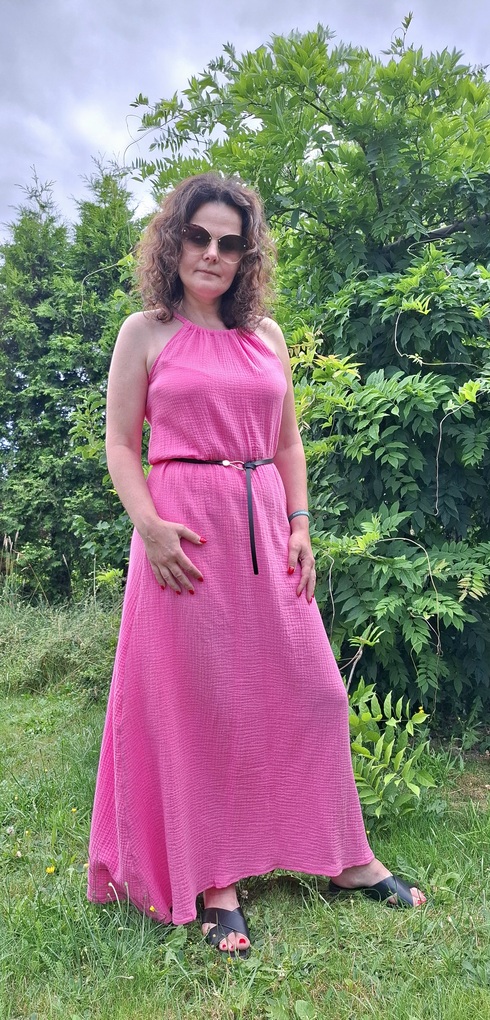 Przepiękna damska długa sukienka muślinowa w kolorze różowym. Kobieca, zwiewna, idealna na co dzień, jak i na wieczorne wyjścia. Fason sukienki idealnie komponuje się z butami na obcasie, jak również z lekkim obuwiem kasual