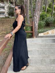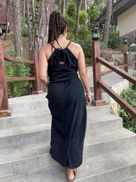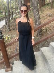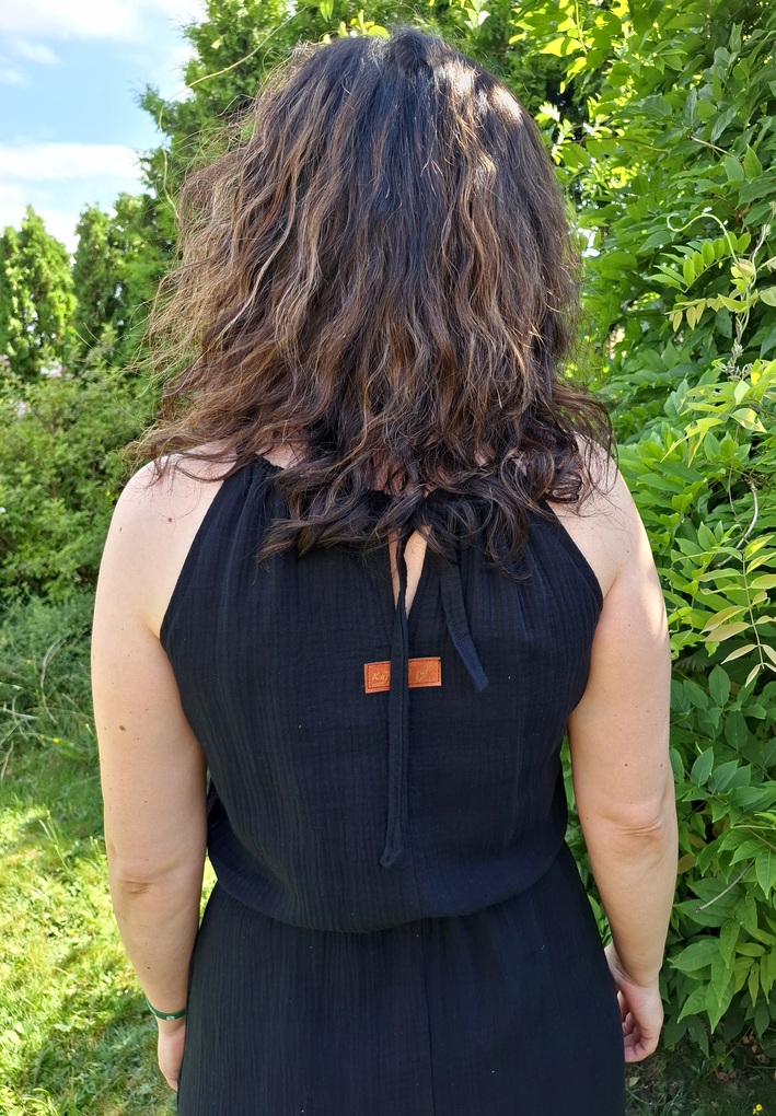 Przepiękna damska długa sukienka muślinowa w kolorze czarnym. Kobieca, zwiewna, idealna na co dzień, jak i na wieczorne wyjścia. Fason sukienki idealnie komponuje się z butami na obcasie, jak również z lekkim obuwiem kasual