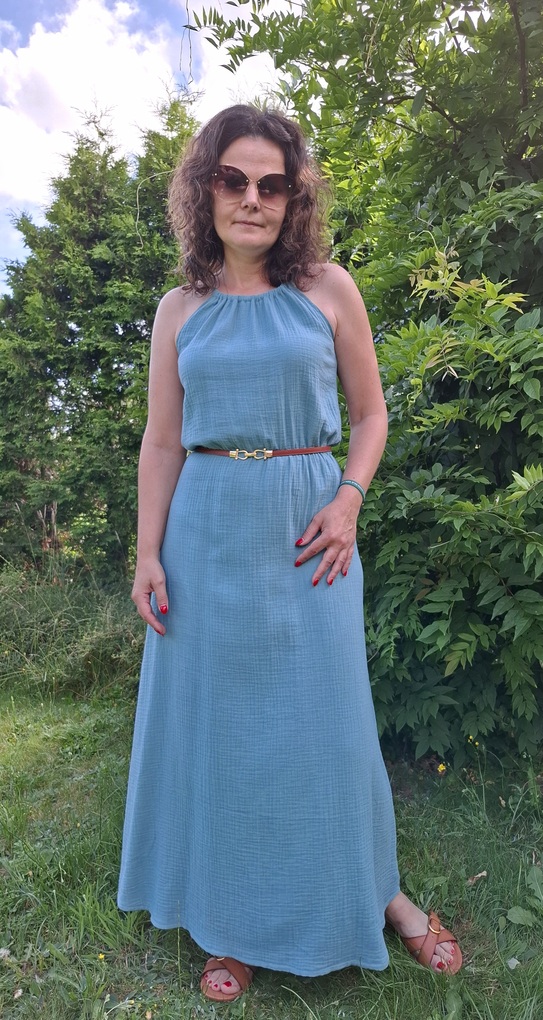 Muślinowa Sukienka z Bawełny  to esencja kobiecego stylu z nutą swobody. Jej lekka muślinowa tkanina i elastyczna gumka w talii dają poczucie swobody przy każdym ruchu. Wybierz ją na spotkanie z przyjaciółkami, zestawiając z sandałami na koturnie, a kiedy nadejdzie czas eleganckich wyjść, dodaj szpilki i delikatną biżuterię, aby podkreślić jej uniwersalny charakter.