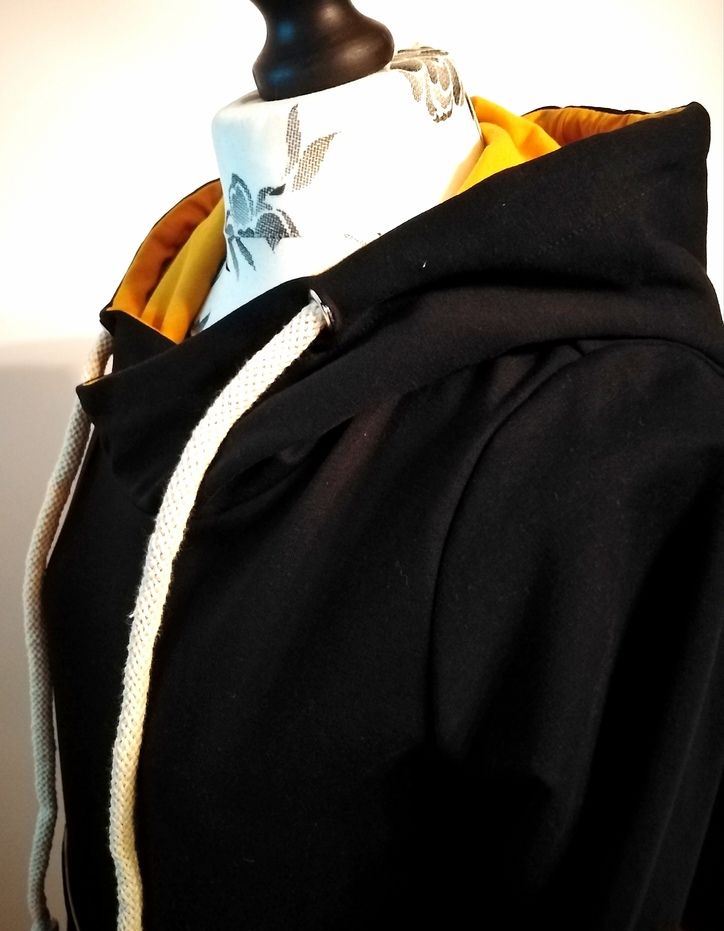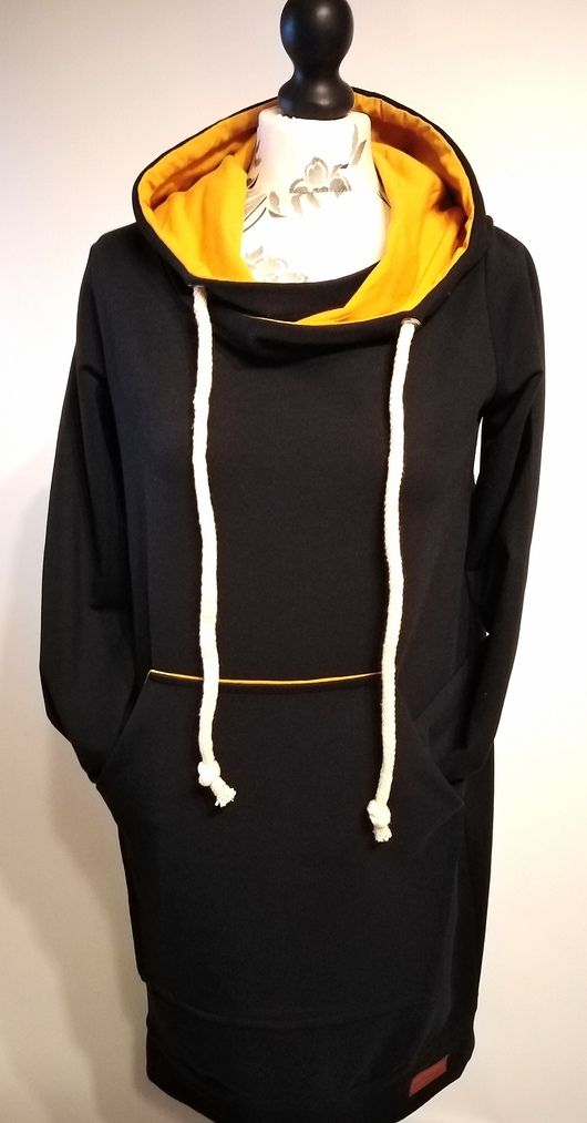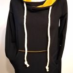 Przepiękna sukienka uszyta z wysokogatunkowej bawełny premium w czarnym kolorze w połączeniu z dzianiną w kolorze musztardy, dodatkowo dzięki domieszce elastanu 6-8% jest wygodna, elastyczna, idealna na co dzień, jak i na wyjątkowe okazje.