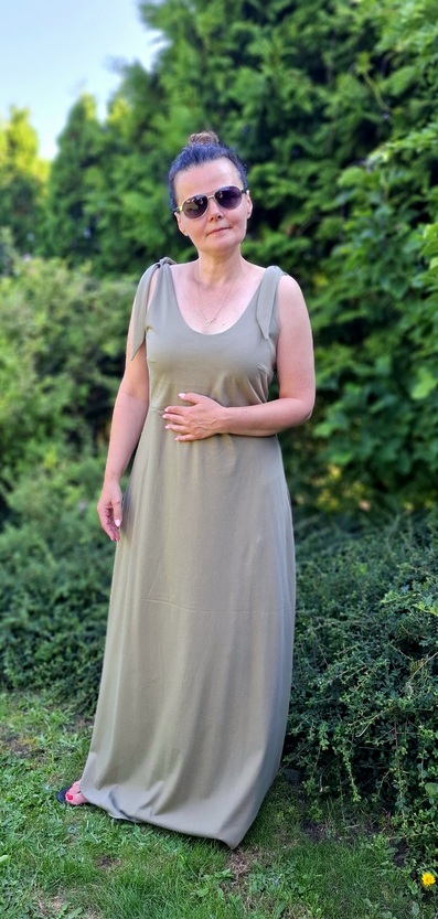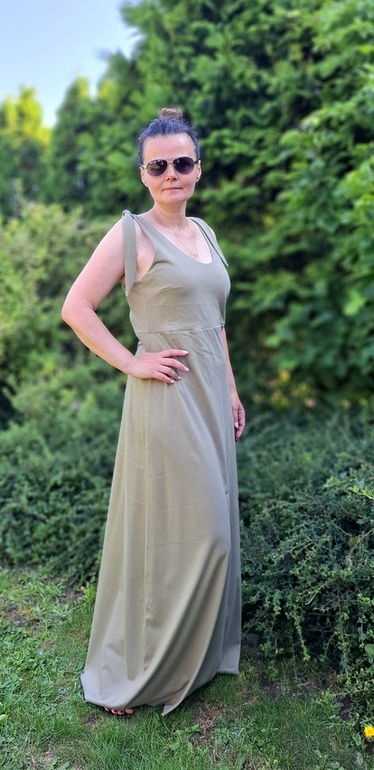 Długa sukienka damska wiązana na ramionach to esencja kobiecego stylu z nutą swobody.