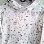 Przepiękna dziecięca sukienka dresowa z kapturek typu kangurka, z dużą kieszenią na przodzie, uszyta z wysokogatunkowej bawełny premium, w delikatny print szarych króliczków, nadruk na dzianinie wykonany jest metodą cyfrową co zapewnia najwyższą jakość nadruku, dodatkowo dzięki domieszce elastanu 6-8% jest wygodna, elastyczna, idealna na co dzień, jak i na wyjątkowe okazje.