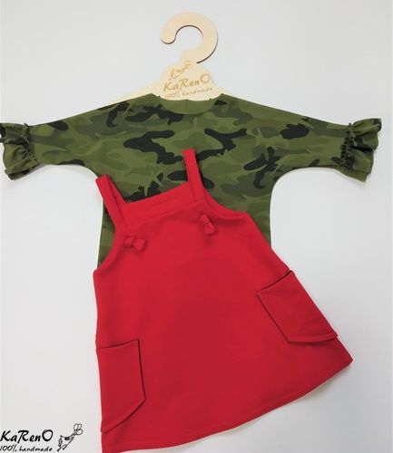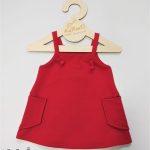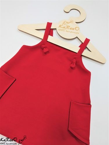 Piękna trapezowa sukieneczka dla dziewczynki na szelkach w kolorze czerwonym