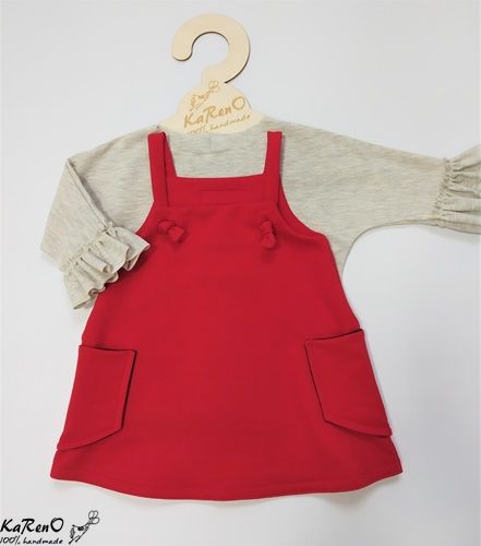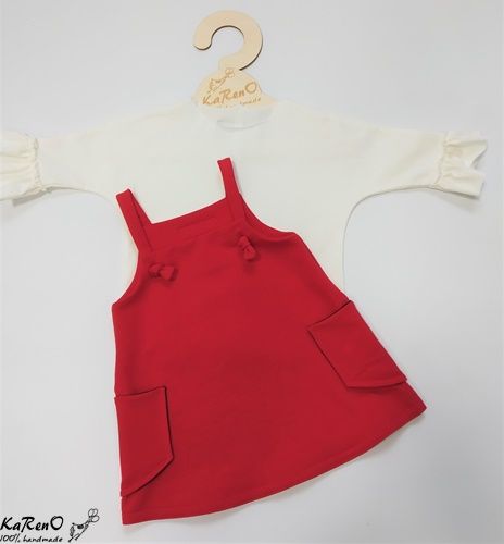 Sukienka o trapezowym kroju na szelkach z kieszonkami na bokach. Sukieneczka idealnie komponuje się z naszymi bluzeczkami z długim rękawkiem w przeróżnych kolorach.