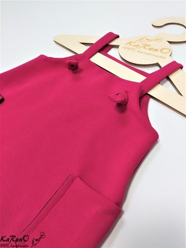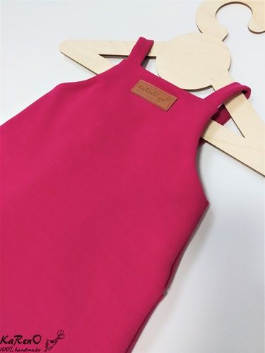 Piękna trapezowa sukieneczka dla dziewczynki na szelkach w kolorze fuksji