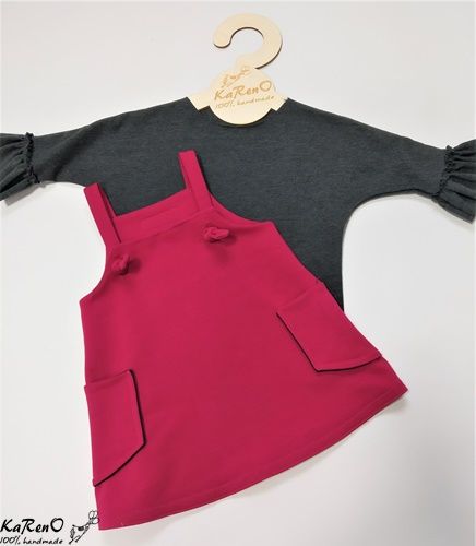 Sukienka o trapezowym kroju na szelkach z kieszonkami na bokach. Sukieneczka idealnie komponuje się z naszymi bluzeczkami z długim rękawkiem w przeróżnych kolorach.
