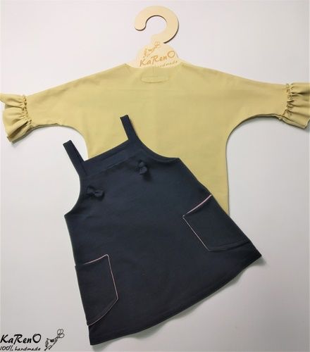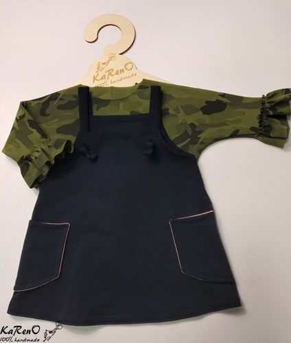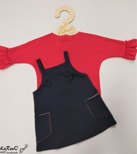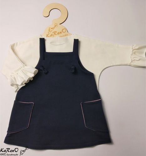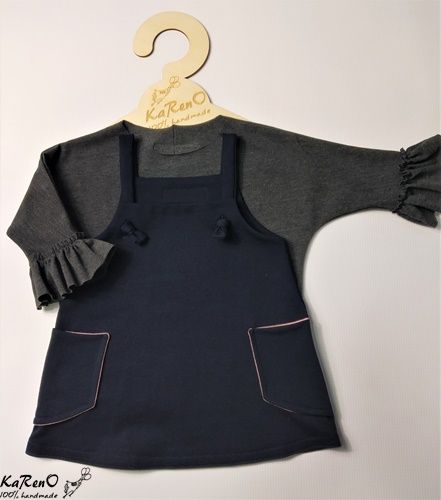Sukienka o trapezowym kroju na szelkach z kieszonkami na bokach. Sukieneczka idealnie komponuje się z naszymi bluzeczkami z długim rękawkiem w przeróżnych kolorach.