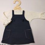 Piękna trapezowa sukieneczka dla dziewczynki na szelkach w kolorze granatowym