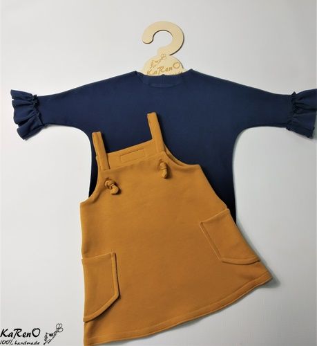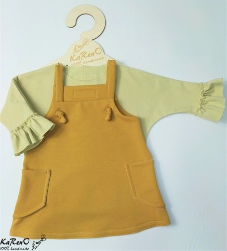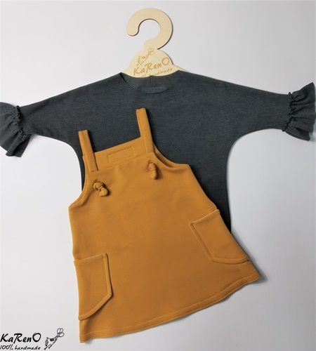 Sukienka o trapezowym kroju na szelkach z kieszonkami na bokach. Sukieneczka idealnie komponuje się z naszymi bluzeczkami z długim rękawkiem w przeróżnych kolorach.