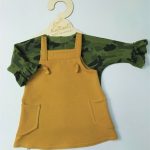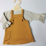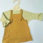 Piękna trapezowa sukieneczka dla dziewczynki na szelkach w kolorze musztardowym