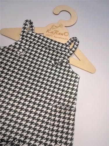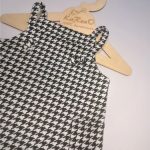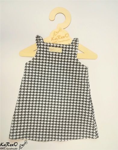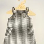 Piękna trapezowa sukieneczka dla dziewczynki na szelkach wzór biało czarnej pepitki