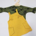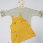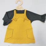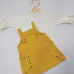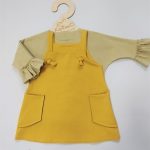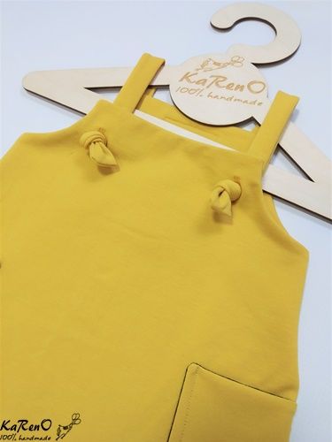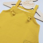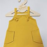 Piękna trapezowa sukieneczka dla dziewczynki na szelkach w kolorze słonecznej musztardy