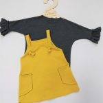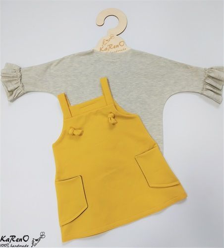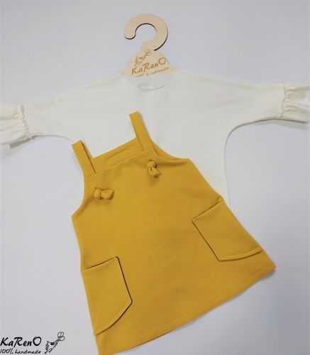 Sukienka o trapezowym kroju na szelkach z kieszonkami na bokach. Sukieneczka idealnie komponuje się z naszymi bluzeczkami z długim rękawkiem w przeróżnych kolorach.