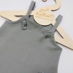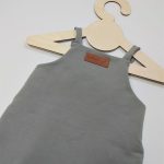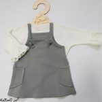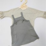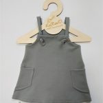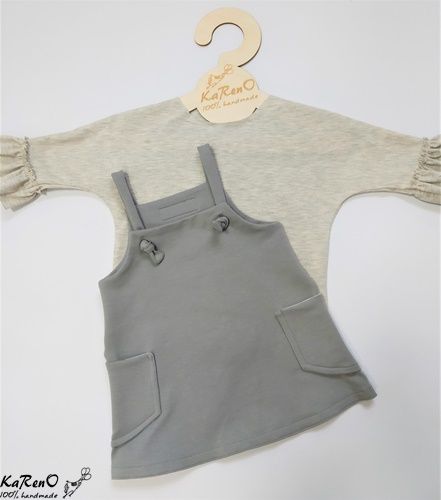 Piękna trapezowa sukieneczka dla dziewczynki na szelkach w kolorze szarym