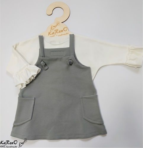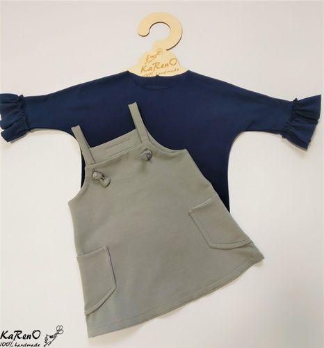 Sukienka o trapezowym kroju na szelkach z kieszonkami na bokach. Sukieneczka idealnie komponuje się z naszymi bluzeczkami z długim rękawkiem w przeróżnych kolorach.