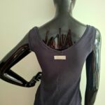Piękny głęboki dekolt na przodzie jak i na plecach. Na szerokich ramiączkach. Tył sukienki z ozdobnym szwem przez środek sukienki. Całość taliowana.