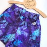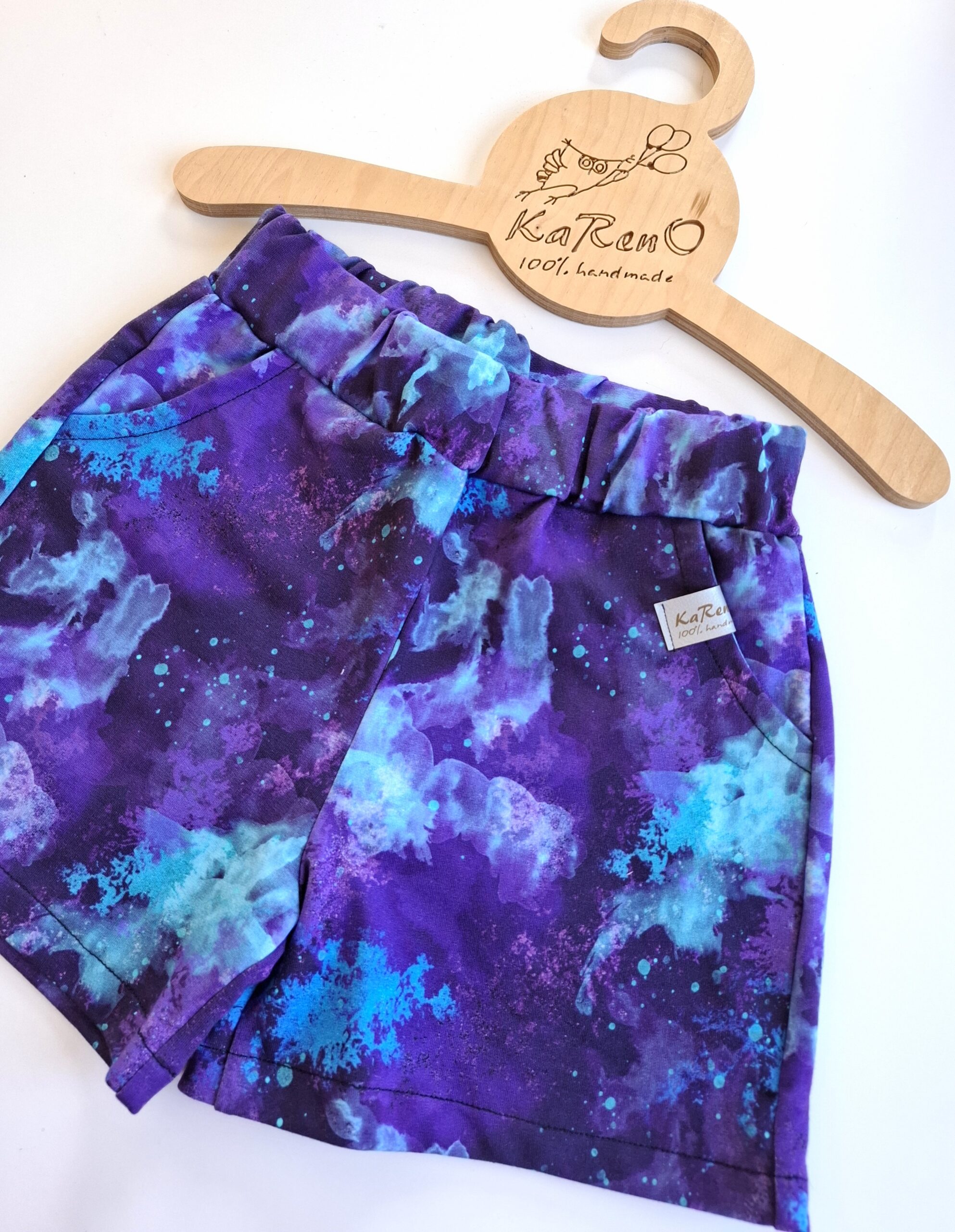 Szorty dziewczęce zostały uszyte z wysokogatunkowej bawełny dresowej premium, dodatkowo dzięki domieszce elastanu 4% są wygodna, elastyczne, nie wypychają się i nie krępują ruchów dziecka. Nadruk na dzianinie wykonany jest metodą cyfrową. Przepiękny print w odcieniach fioletu i granatu.