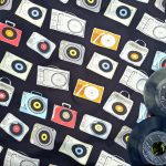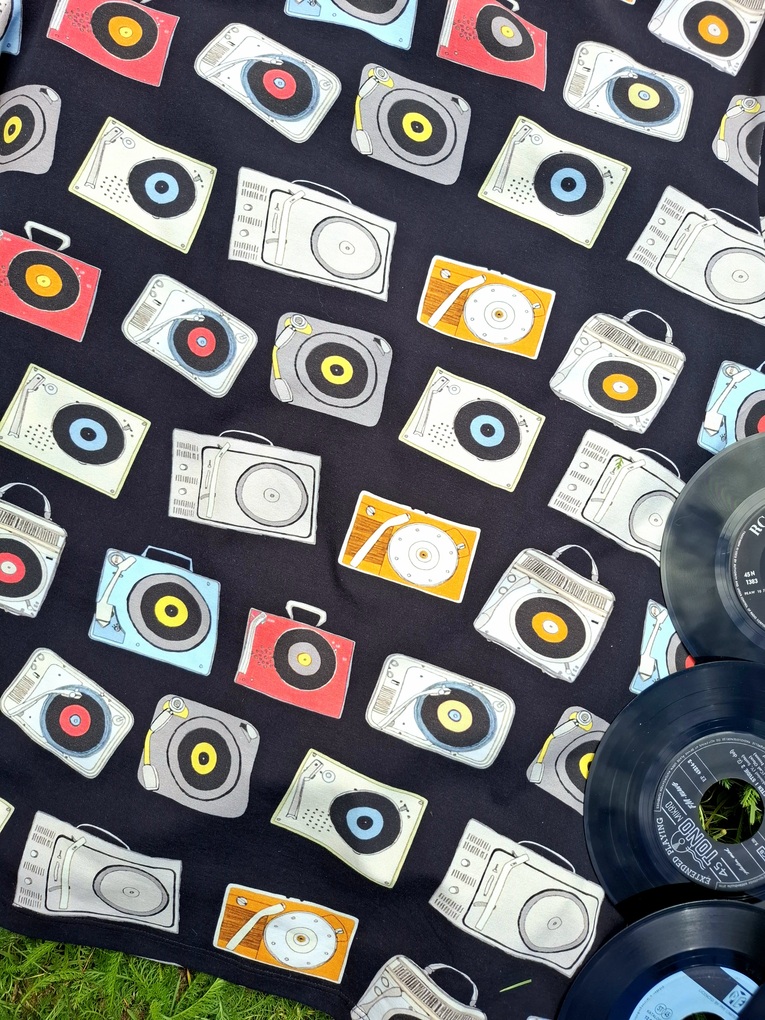 Klasyczny tshirt męski w piękny wzór kolorowych gramofonów. Uszyty z dzianiny jersey premium druk cyfrowy.