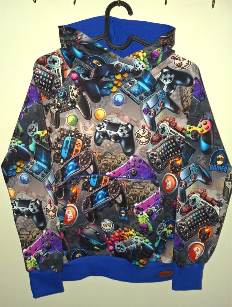 Bluza z kapturem kolorowe pady z niebieskim